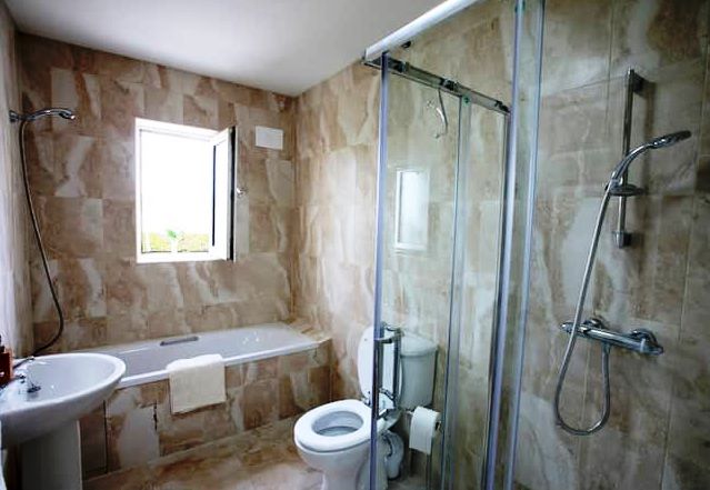 - Badkamers met toilet en douche.
